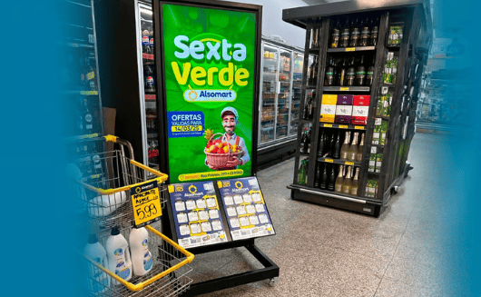 Display versátil e móvel, ideal para promoções sazonais e uso em diferentes pontos da loja. Com estrutura resistente e rodízios em gel, une praticidade e alta performance visual.